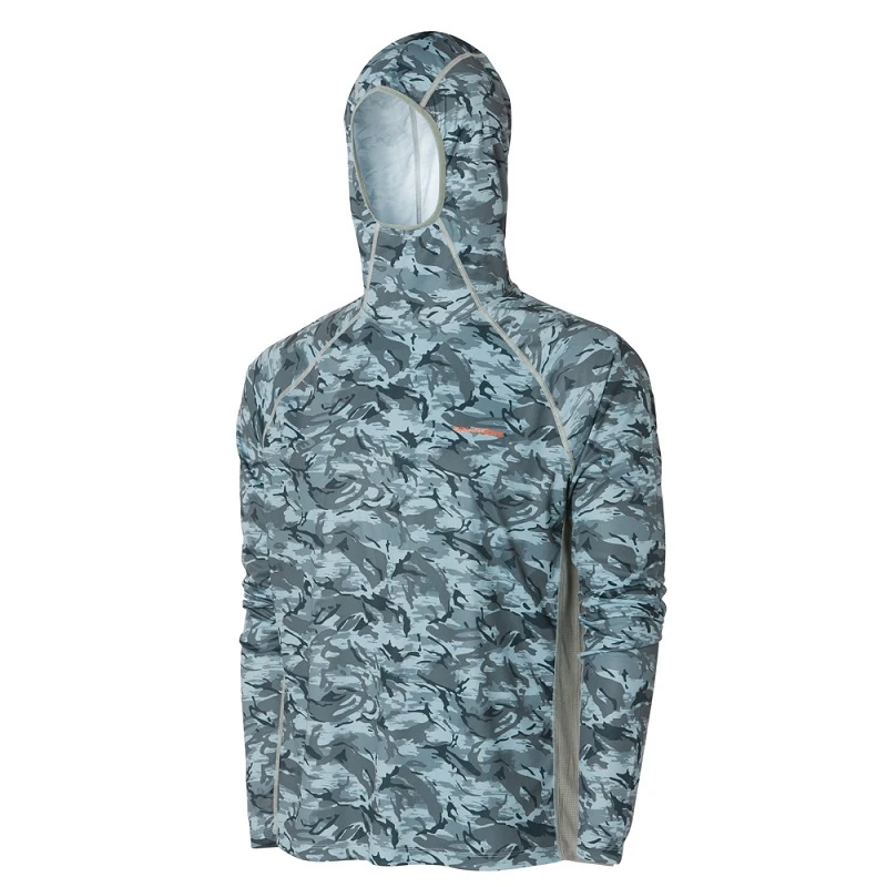 Grundéns Solstrale Hoodie Glacier Camo beschermt u tegen vuil en UV-stralen van de zon.