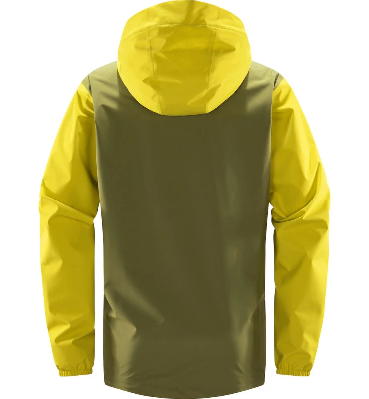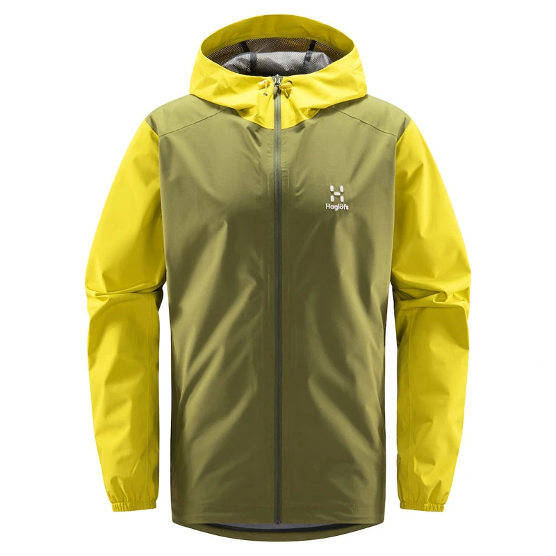 Haglöfs Buteo Jacket Men Olive Green/Aurora is een wind- en waterdicht regenjack in minimalistisch design van comfortabel, rekbaar materiaal. Houdt je droog en warm als het regent!