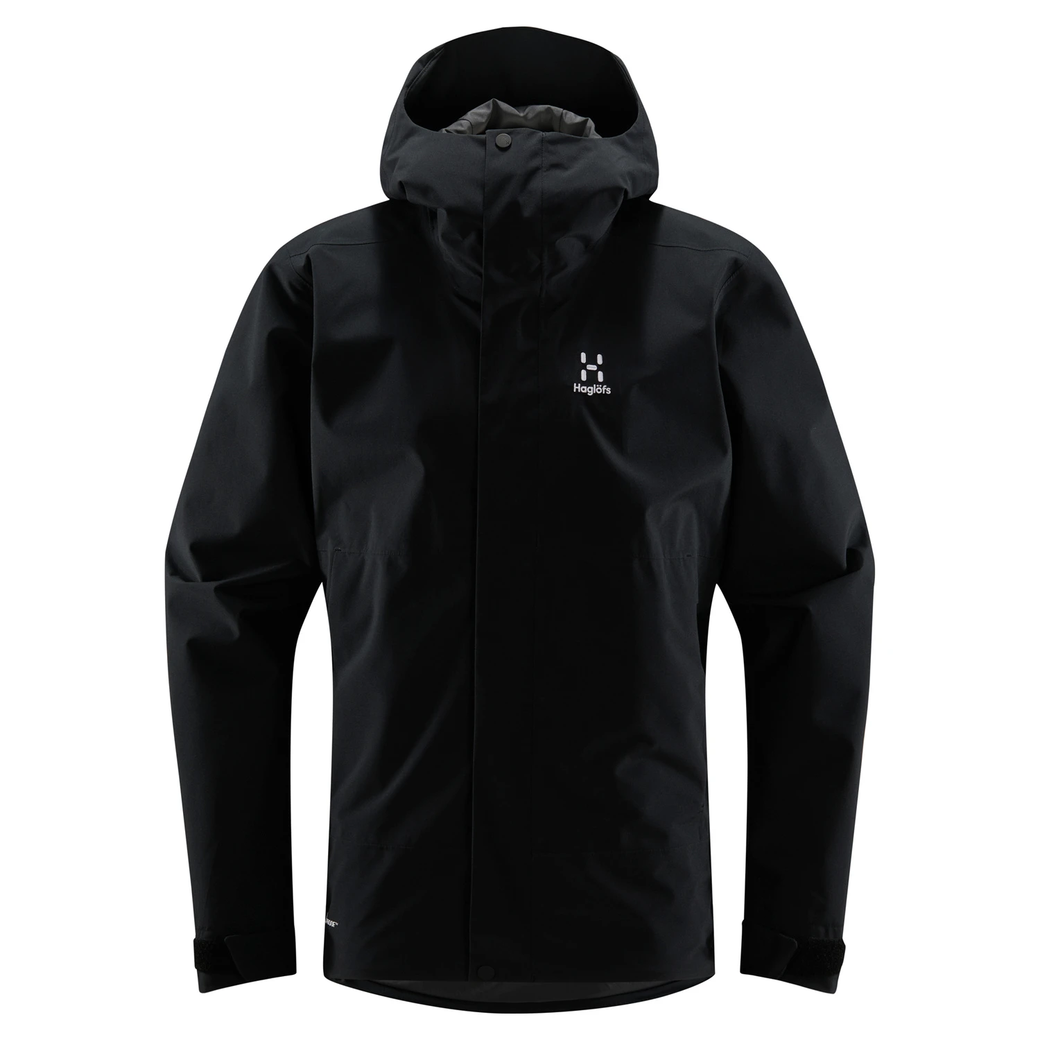 Haglöfs Koyal Proof Jacket Men True Black is een lichtgewicht, waterdicht en ademend regenjack van Haglöfs. Houdt je droog wanneer je het nodig hebt en is dun genoeg om altijd mee te nemen in je rugzak!