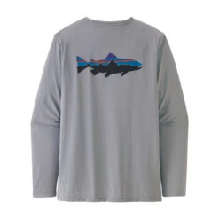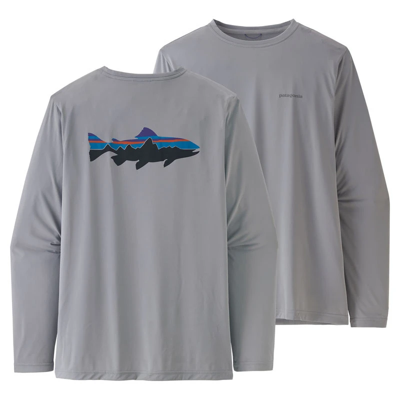 Het Capilene Cool Daily Fish Graphic Shirt met lange mouwen combineert een comfortabele T-shirt pasvorm met een ultralichte, sneldrogende 100% gerecyclede polyester stof die 50+ UPF bescherming biedt en Polygiene® permanente geurcontrole; de originele op vissen geïnspireerde graphics herinneren je eraan waar je ware interesses liggen.
