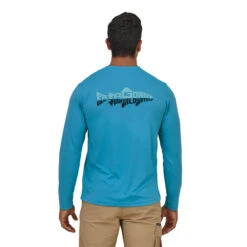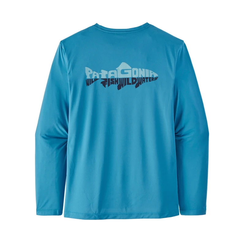 Patagonia’s Capilene® Cool Daily Fish Graphic Shirt met lange mouwen combineert stretch en een relaxte pasvorm met een lichtgewicht, sneldrogende en snel doorlatende 100% gerecyclede polyester stof met HeiQ® Pure geurcontrole.