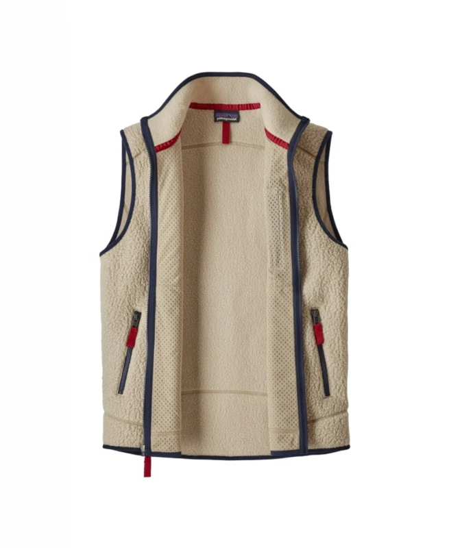 Patagonia M’s Retro Pile Vest El Cap Khaki is een warm, makkelijk te dragen fleecevest van gerecycled polyester dubbelzijdig stevig omgekeerd lam. Fair Trade Certified™ genaaid!