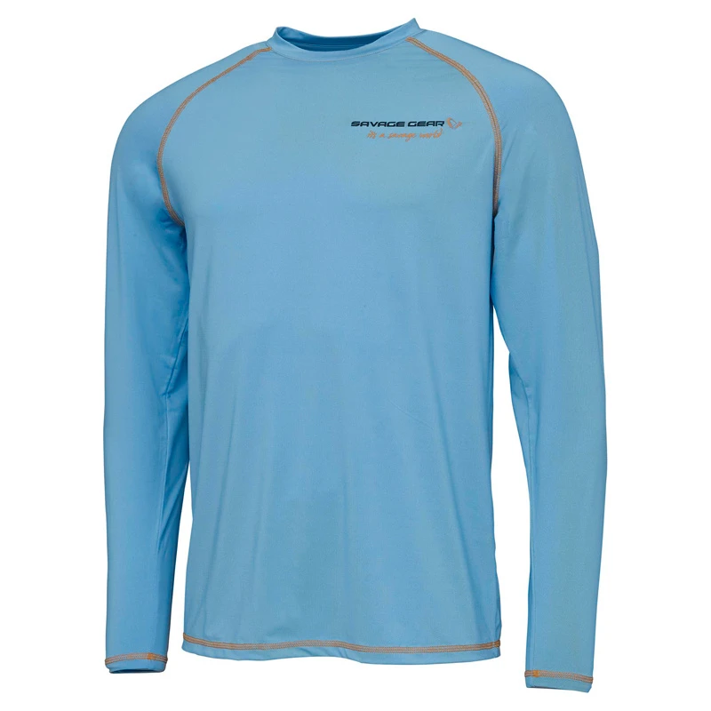 Savage Gear Aqua UV Long Sleeve Tee, Bonnie Blue. Rekbaar en sneldrogend T-shirt met UV-schild dat je huid beschermt onder zonnige omstandigheden.