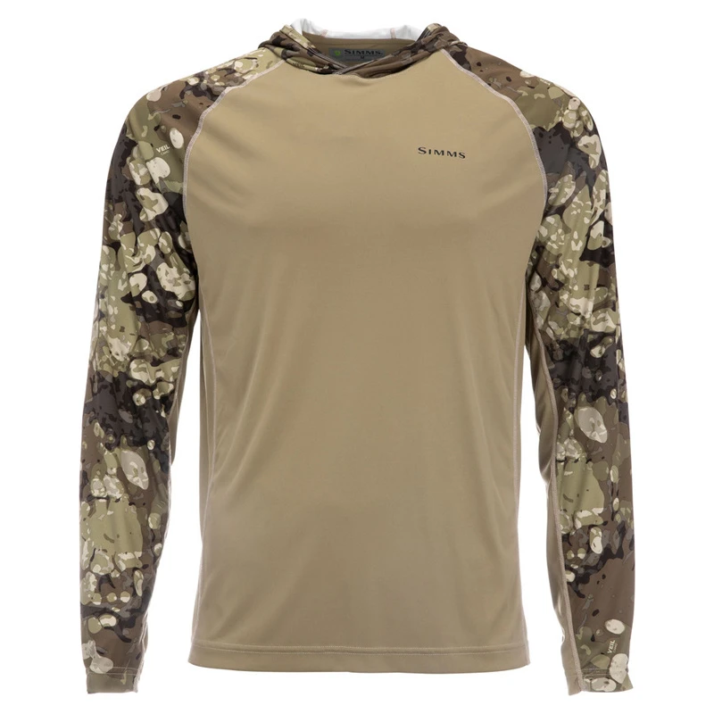 Simms BugStopper Sflex Hoody Riparian Camo is een sneldrogend, anti-geur en insecten beschermend shirt met extra mobiliteit!
