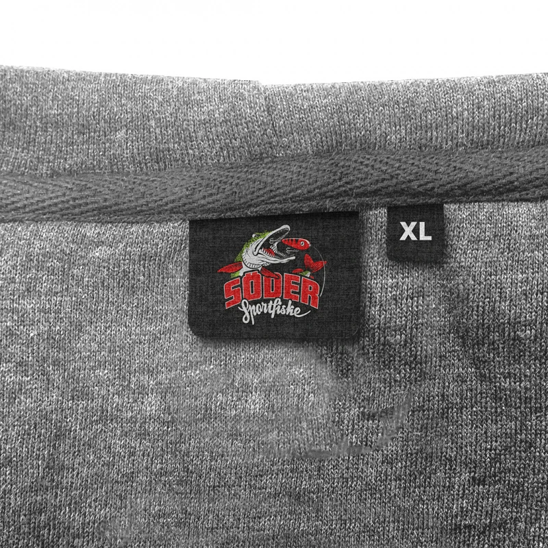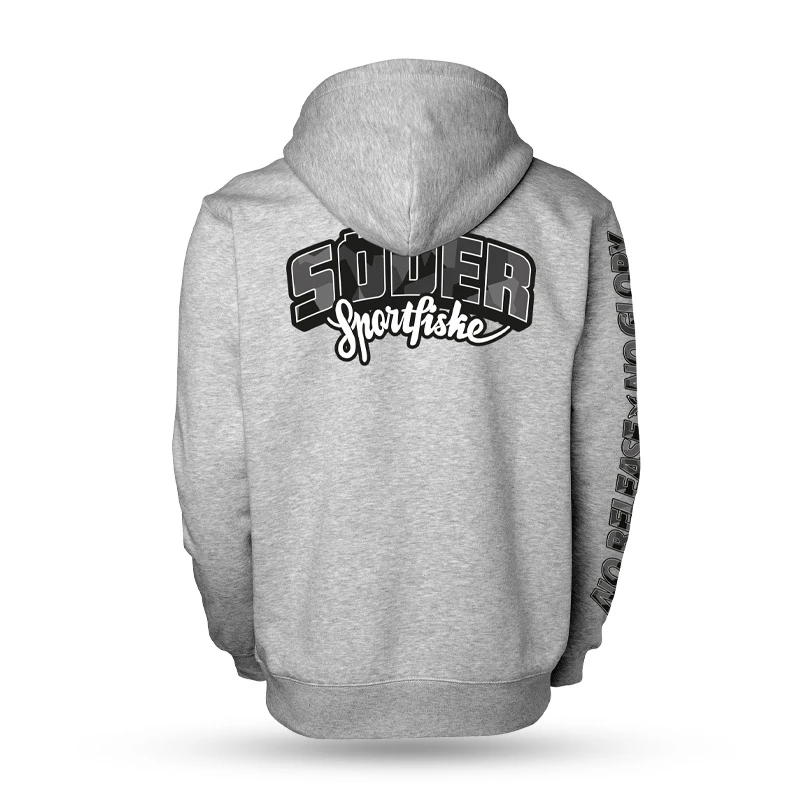Lichtgrijze hoodie met rode veters en camo details, blijf straat op zee!