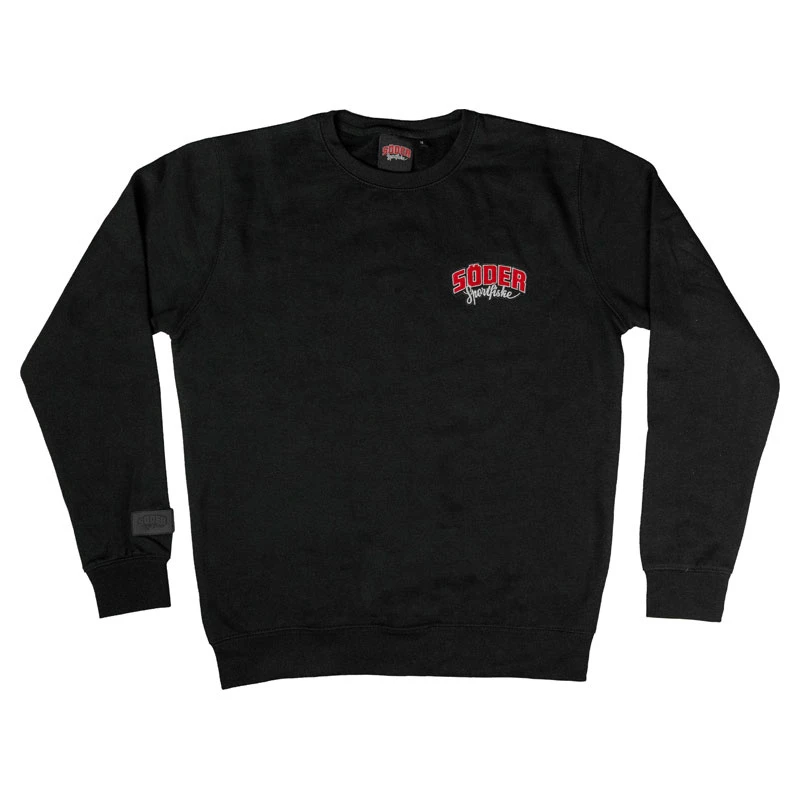 Stijlvolle, zwarte crewneck met Söder-logo op de borst, hou het straat op het meer!
