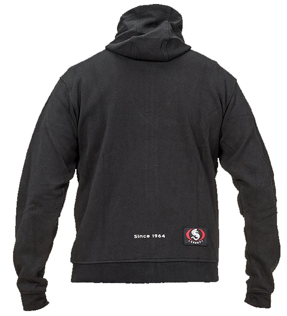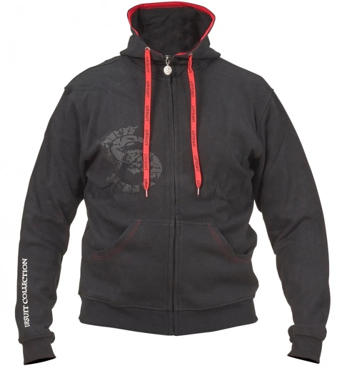 Zwarte hoodie met Ursuit logo. Rits aan de voorkant. Zakken aan beide zijden.