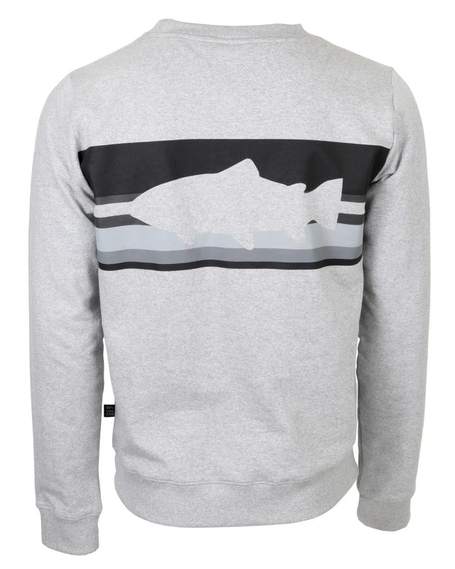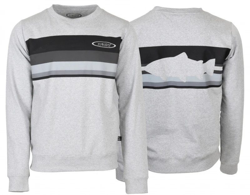 Vision Stripe Collage is een gestreept sweatshirt van 100% gerecycled materiaal. Leuk zalmmotief op de rug!